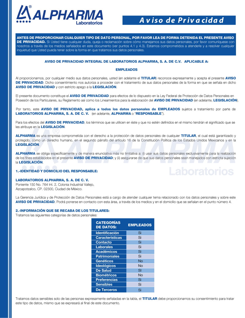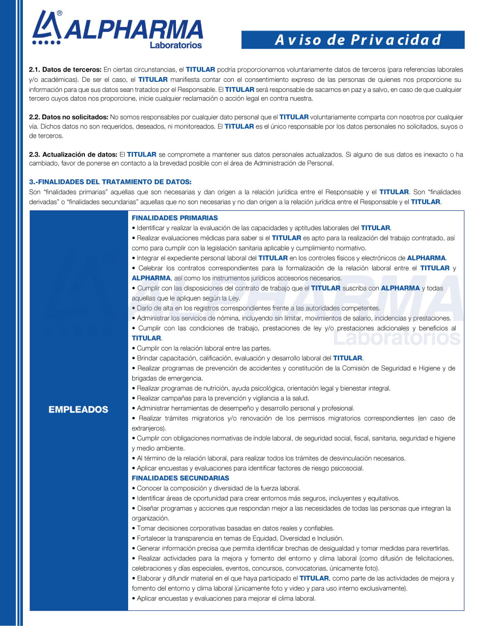 - 3. Si usted es nuestro proveedor de servicios o productos, para conocer el Aviso de Privacidad dé clic aquí.