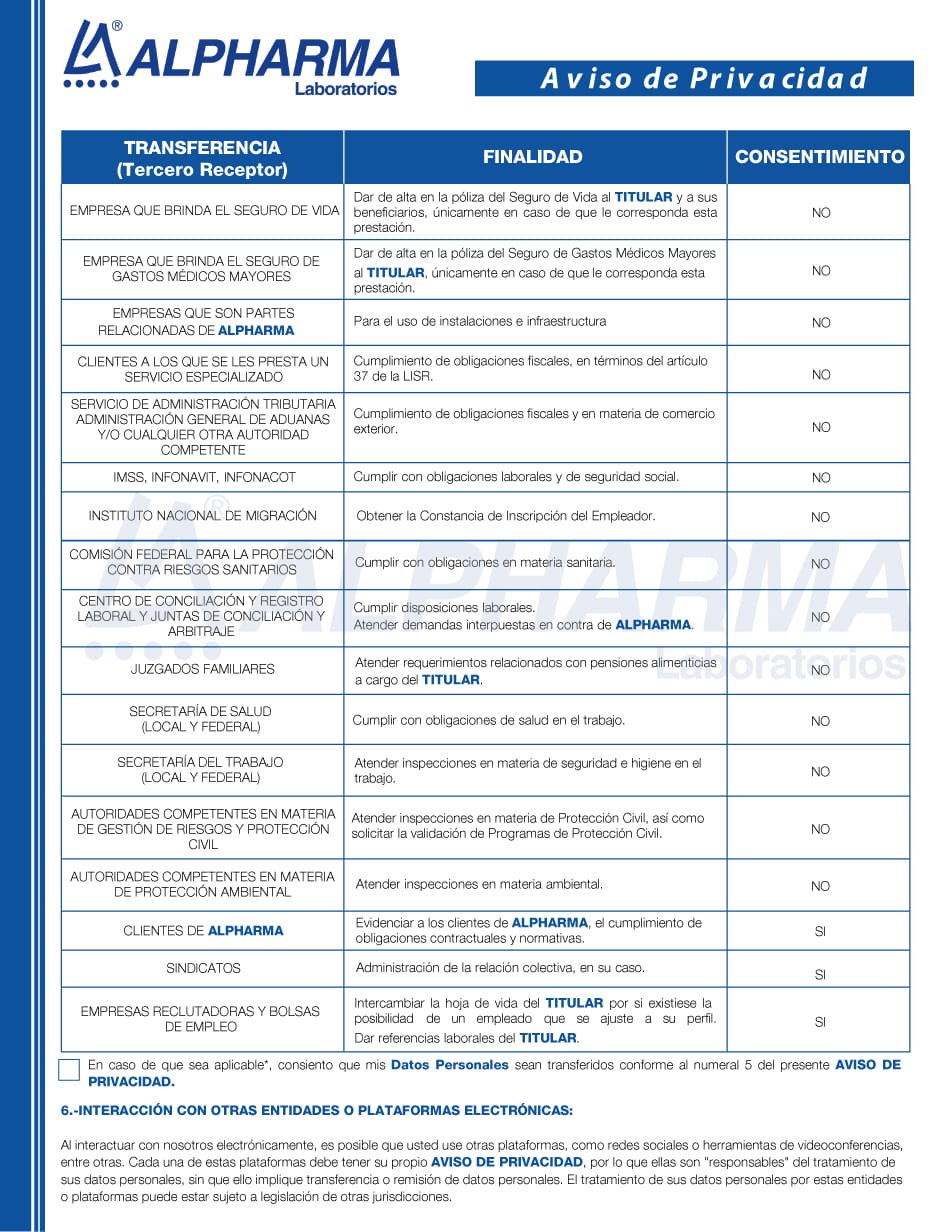 - 5. Si usted es empleado de algún contratista que nos provee servicios, para conocer el Aviso de Privacidad, dé clic aquí.