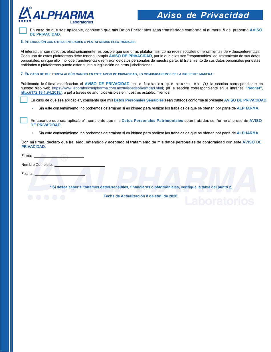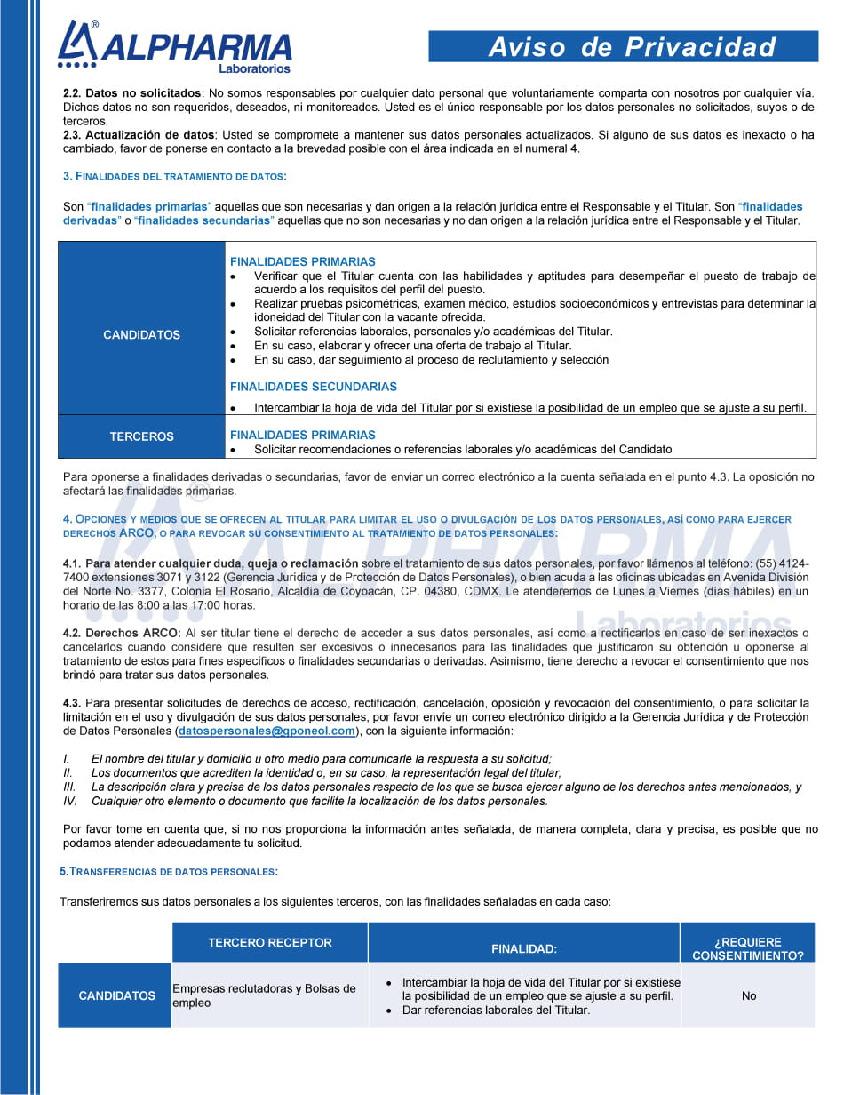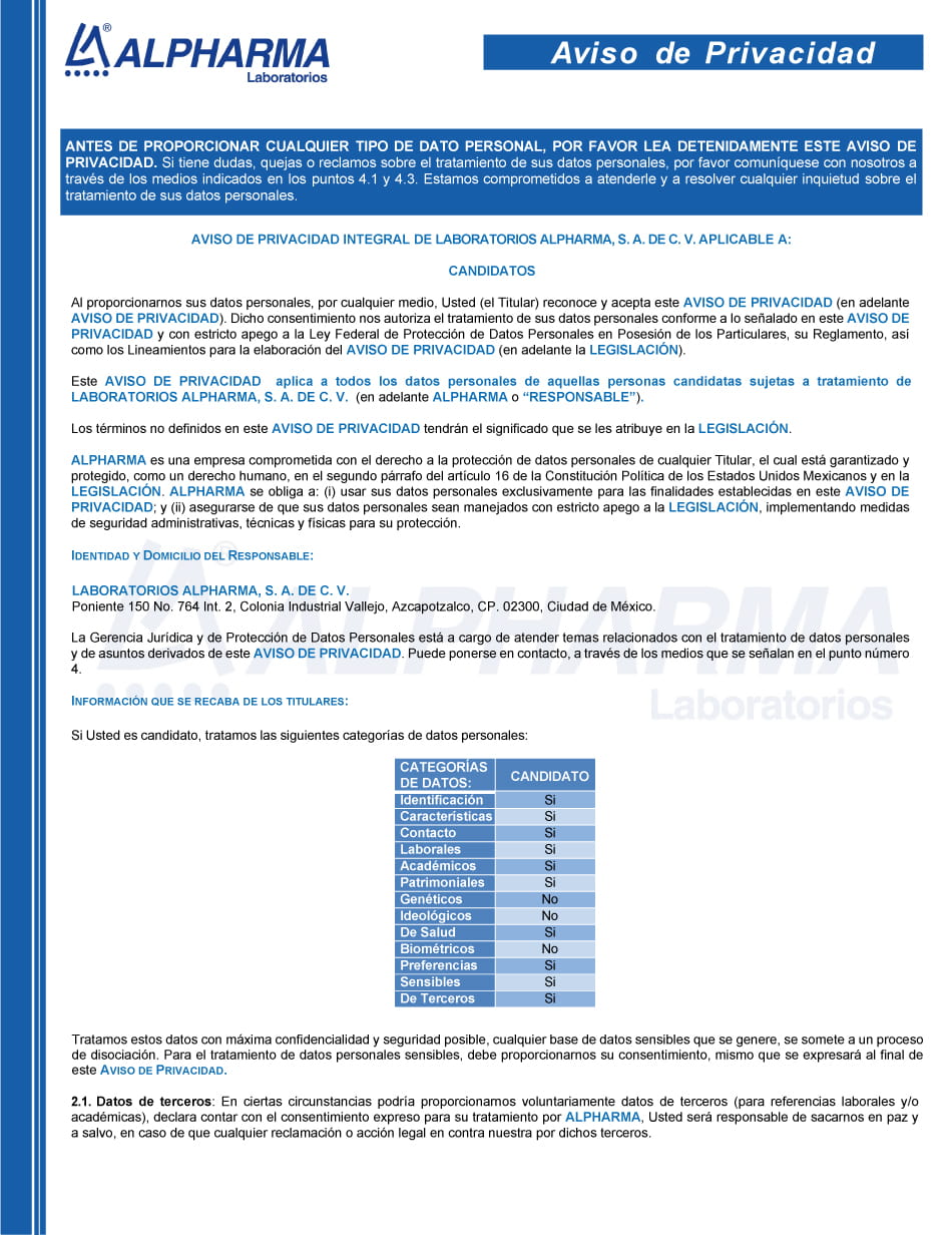 - 2. Si usted es candidato de nuestra bolsa de trabajo, para conocer el Aviso de Privacidad dé clic aquí.
