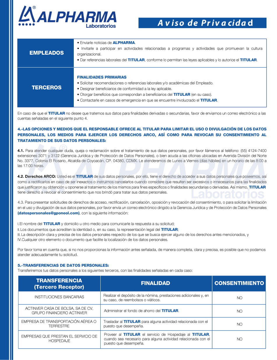 - 5. Si usted es empleado de algún contratista que nos provee servicios, para conocer el Aviso de Privacidad, dé clic aquí.