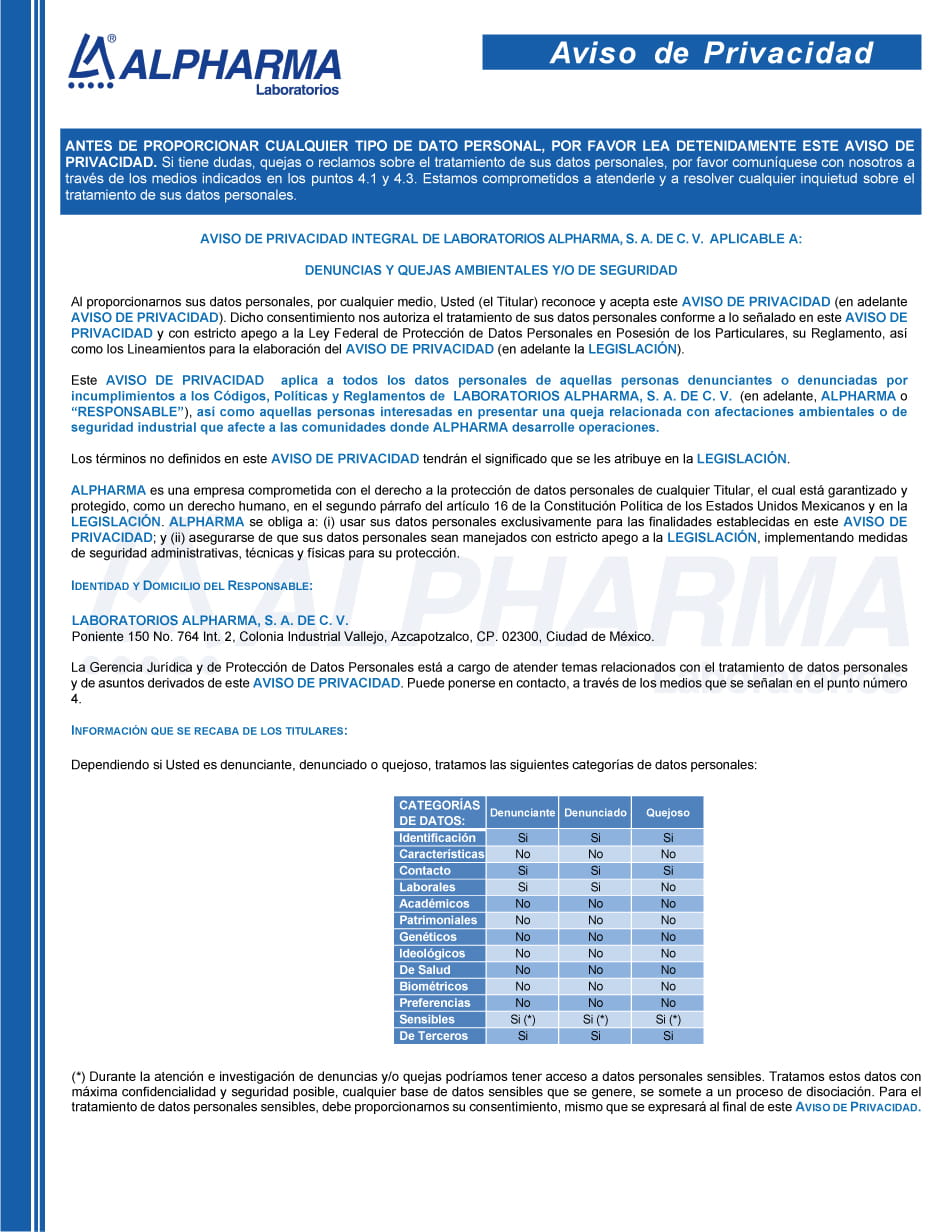 - 9. Si usted quiere realizar una denuncia y queja ambiental y/o de seguridad, para conocer el Aviso de Privacidad, dé clic aquí.