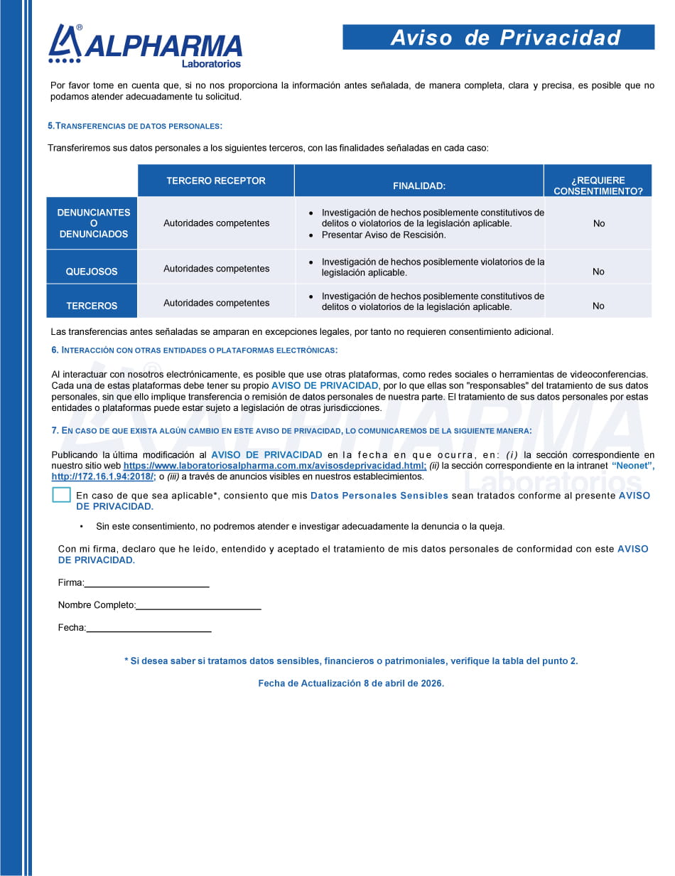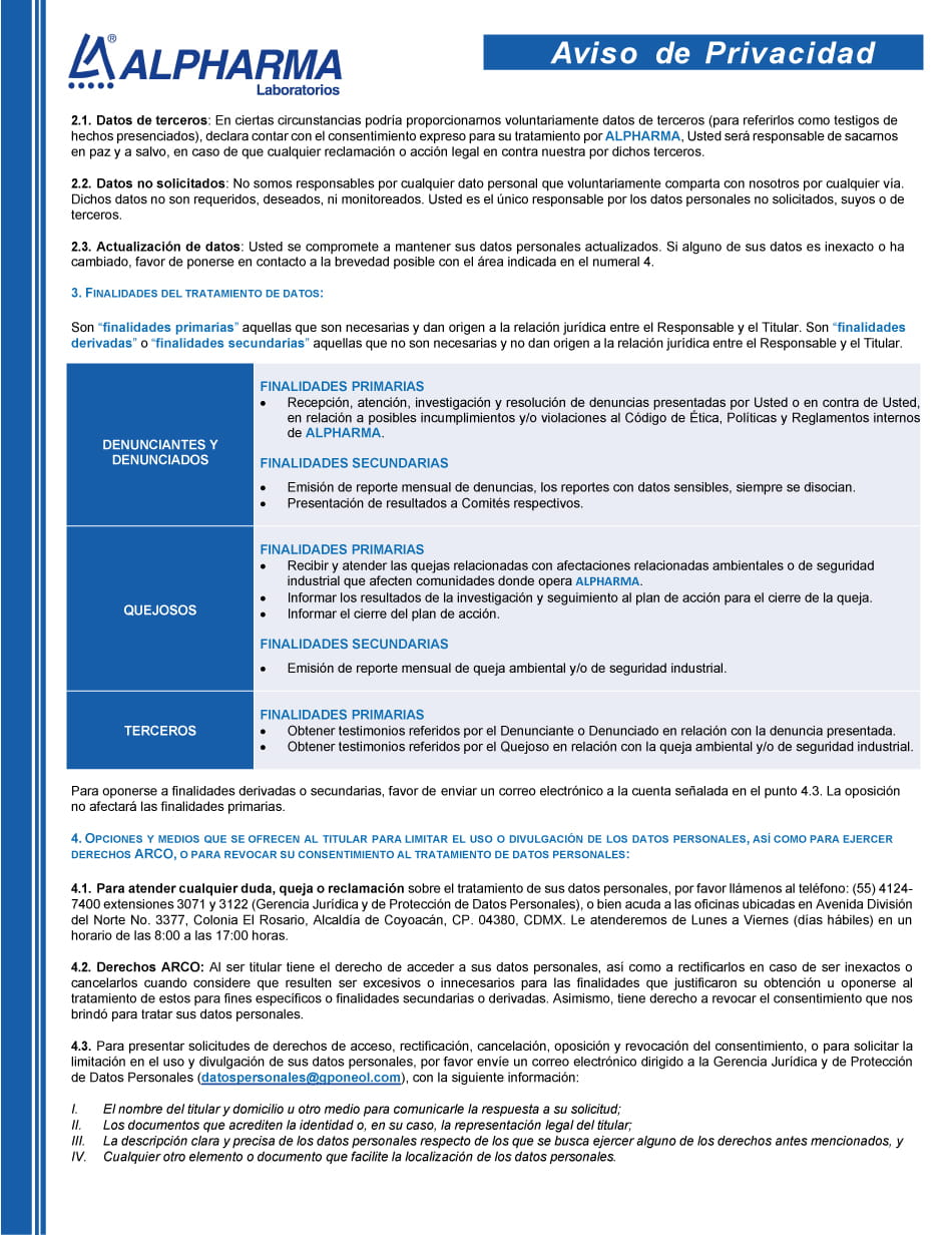 - 3. Si usted es nuestro proveedor de servicios o productos, para conocer el Aviso de Privacidad dé clic aquí.